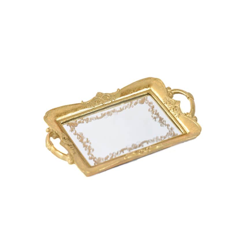 מגש מראה לעוגות/תכשיטים/נוי בזהב וינטאג' 27/21 ס"מ (ללא ידיות)
