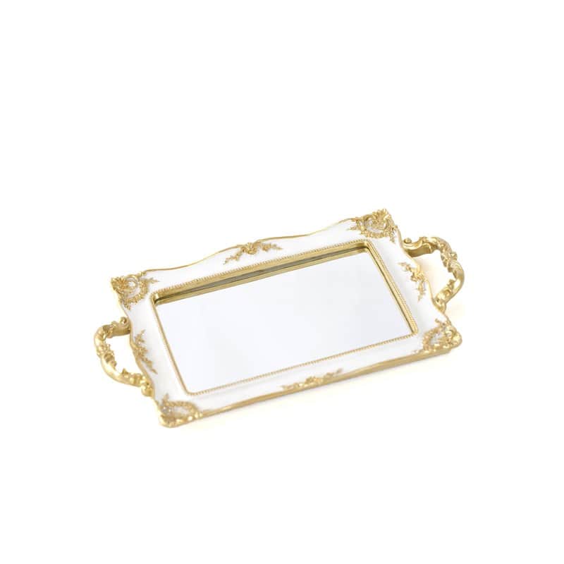 מגש מראה לעוגות/תכשיטים/נוי בגווני לבן וזהב וינטאג' 33/25 ס"מ (ללא ידיות)